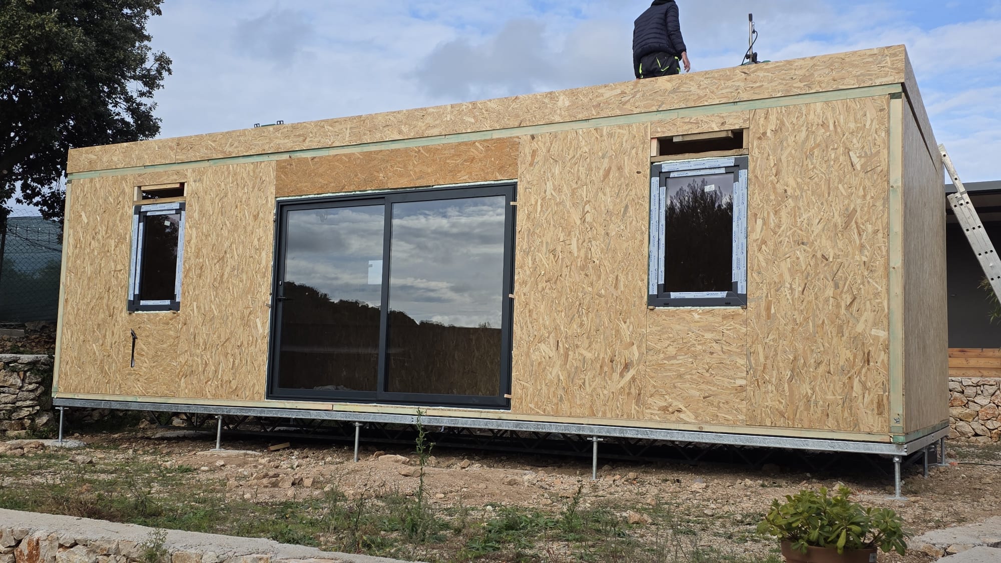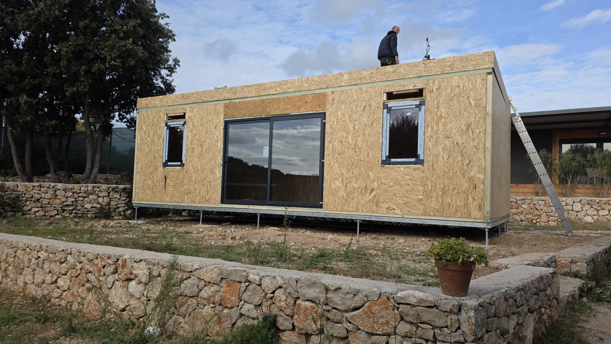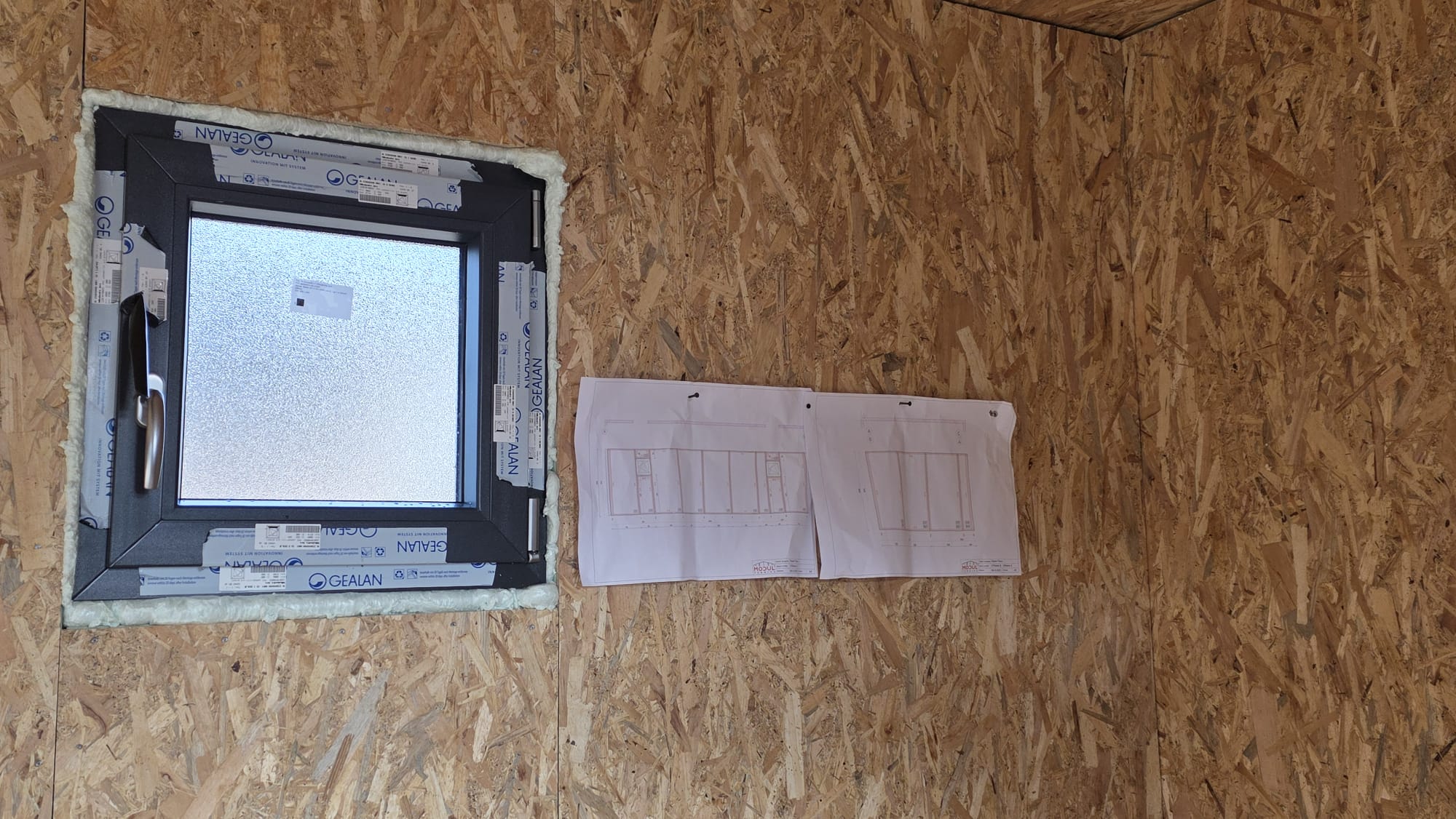 …und das bitte schnell – denn der Wetterbericht sagt in den nächsten Tagen Regen und ordentlich kalten Wind an! Deshalb muss es jetzt schnell gehen, damit der Rohbau innen nicht feucht wird. Schon früh am Donnerstagmorgen wurde gewerkelt, was das Zeug hielt. Das Dach wurde versiegelt und auch der Fensterbauer hat die Fenster sowie die große Schiebetür gebracht und montiert.