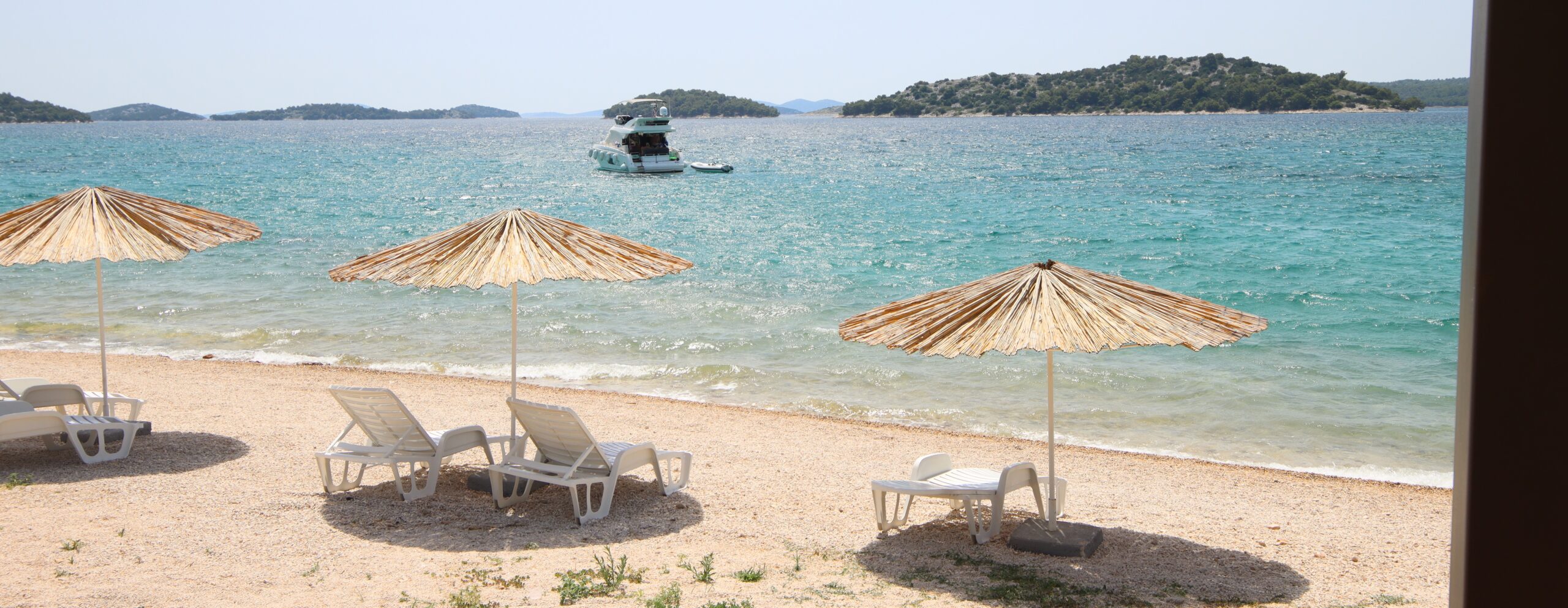 Der Strand ist übrigens nur 50 Meter entfernt und Mario & sein Team sorgen an der Beach-Bar für das leibliche Wohl. Kalte Getränke und Cocktails kann man hier mit direktem Blick auf das Meer genießen! Geplant ist sogar ein kleines Restaurant, mit frischen, typischen kroatischen Gerichten, was aber derzeit noch nicht fertig gestellt ist.
